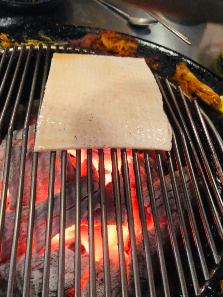 숯이 한 번씩 기름에 타 불이 확확 올라와서 조금씩 태워진 삼겹살T_T 그래도 맛있겠지 했습니다!
