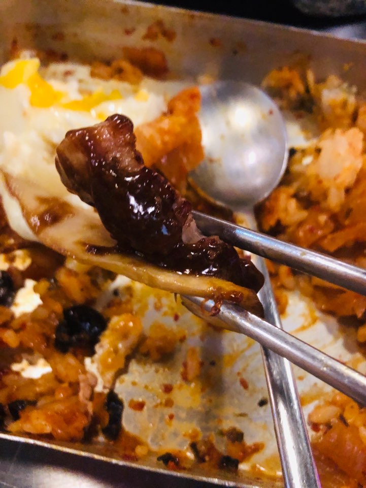 특제소스를 찍은 뒤 버섯과 함께 고기한접. 저는 버섯을 정말 좋아해서 그 버섯의 달달한 맛과 소스를 찍은 고기의 달달한 맛이 정말 일품이었습니다.